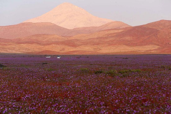 阿塔卡馬沙漠中有超過200多種花,大多數(shù)都是此地區(qū)特有的物種,不同的花會相繼綻放,并伴隨著昆蟲、鳥類與蜥蜴的繁殖。