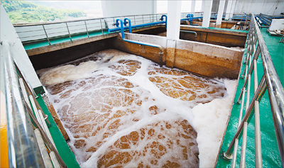 要做到“零排放”,既要優(yōu)化生產(chǎn)段,更要把牢處理關(guān)。記者發(fā)現(xiàn),工業(yè)園11棟廠房,每棟樓體上都布了8根管道,它們從各個(gè)車間收集了8類生產(chǎn)污水,經(jīng)埋設(shè)在地下的總管,最后匯總到污水處理廠。這座污水處理廠引進(jìn)德國(guó)先進(jìn)技術(shù),整個(gè)處理過(guò)程中廢水利用率達(dá)到99.64%,滿負(fù)荷運(yùn)轉(zhuǎn)時(shí)日處理能力5000噸。