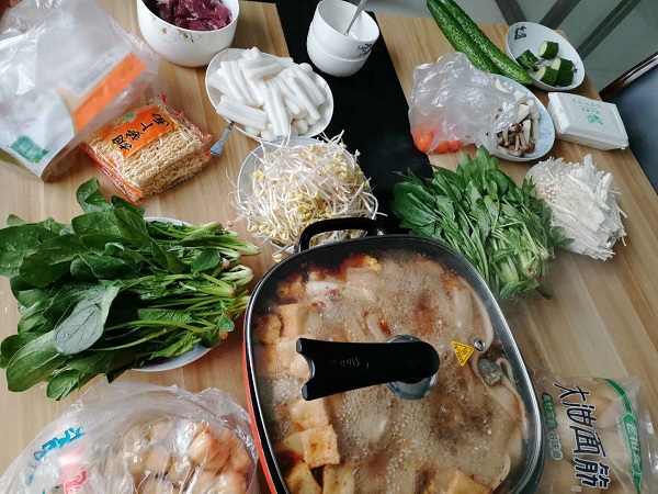 雖然只是比較小的改裝,但是辦公室要重新布置,辦公桌也要拆了重裝,工作量還是很大的,加班的人員到中午的時候已經筋疲力盡了。剛準備休息就聞到飯香味,原來是領導安排了自制小火鍋,解解大家的疲乏,畢竟下午還有很多事情要做。 在公司吃火鍋,我們也是第一次哦,因為疫情不能出去聚餐。