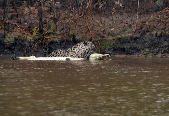一只饑餓的美洲豹在河岸旁徘徊,在水中凱門鱷毫不知情的情況下,美洲豹迅速地跳入水中與凱門鱷展開搏斗。美洲豹大獲全勝后,將凱門鱷拖到森林里享用。